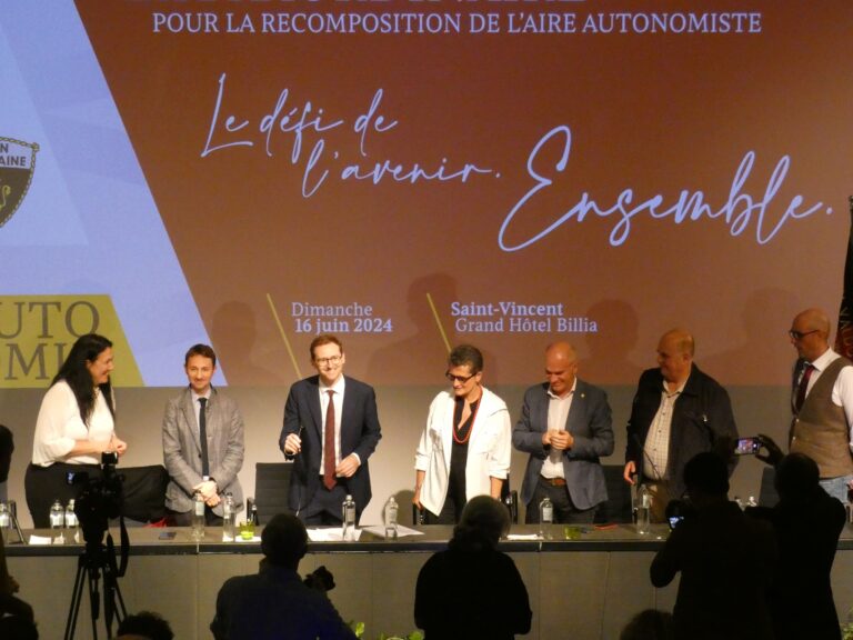 Tutto da programma: la Réunion si è materializzata, l’immediata conseguenza del congresso unionista di oggi – 16 giugno – sarà la costituzione di un gruppo consiliare regionale a 11, sotto la bandiera del Mouvement. Si sono susseguiti in serie gli interventi prima di Cristina Machet, come Presidentessa uscente, poi Albert Chatrian e Luciano