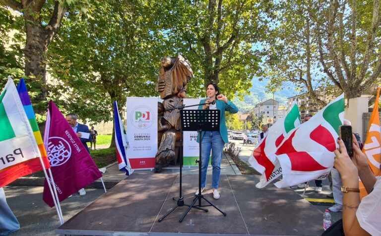 Nel pomeriggio di ieri – domenica 7 settembre –, la Segretaria nazionale del Partito Democratico Elly Schlein è tornata in Valle d’Aosta. In vista delle elezioni regionali e comunali del prossimo 28 settembre, la visita si è svolta in piazza Porta Praetoria alla presenza di circa 40 persone. ”Sono contenta di venire per