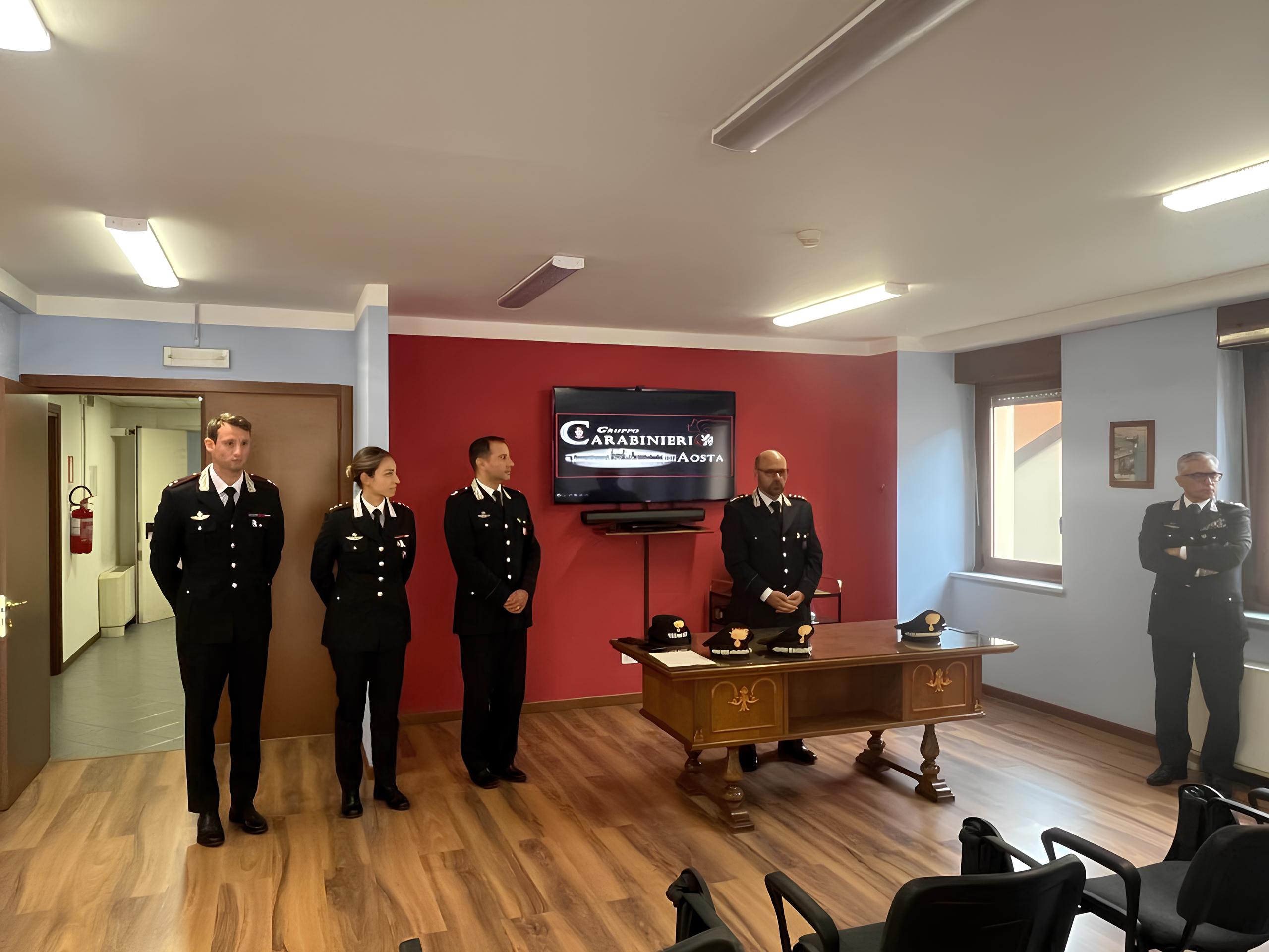 Ma anche altri ufficiali sono stati recentemente nominati: il Magg. Gianluca Carpinone diventa il nuovo comandante della Compagnia di Aosta, dopo quattro anni di esperienza a Santa Margherita Ligure (Genova). Il Tenente Paolo Carraro, 25 anni, laureato in Giurisprudenza e originario di Padova, assume il comando del Nucleo operativo e Radiomobile, sostituendo Adriano Marrale, trasferito a Milano.