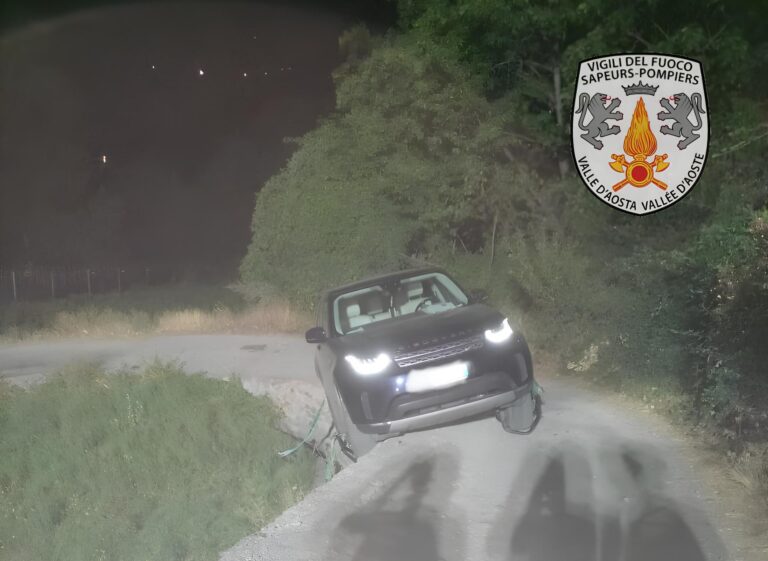 Nella notte, fra il 12 e 13 agosto, un SUV è rimasto bloccato sul ciglio della strada che collega Porossan a Saint-Christophe, nel territorio comunale di Aosta. Gli occupanti – rimasti illesi – hanno chiesto subito aiuto ai soccorsi. Sul posto sono quindi intervenuti i Vigili del fuoco, che con l’impiego di un’autogru