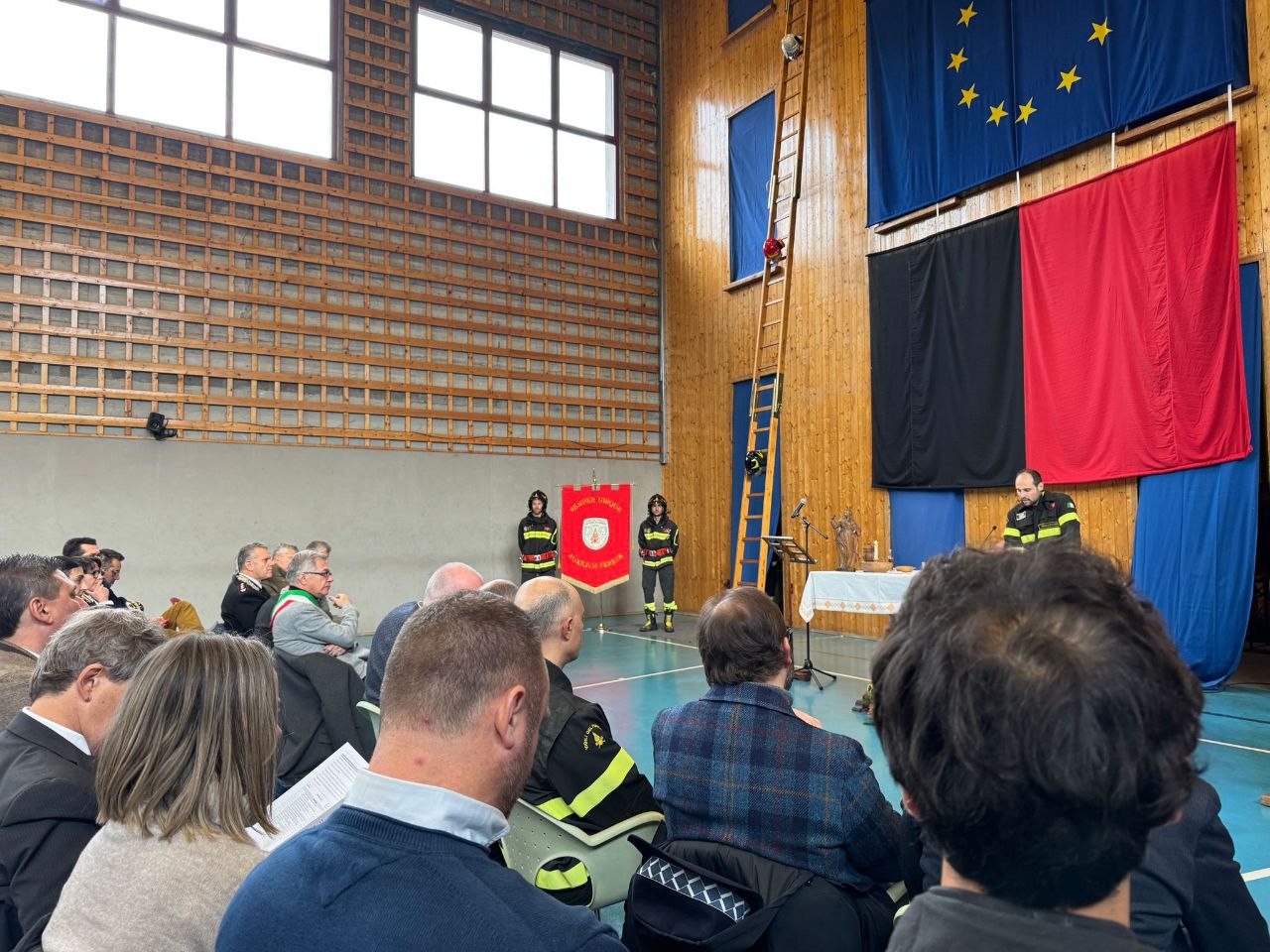 La celebrazione è iniziata alle 10:30 con la deposizione di una corona d’alloro al Monumento ai Caduti, accompagnata da un picchetto d’onore dei Vigili del fuoco. Un momento solenne, seguito dalla benedizione e dalla Santa Messa officiata da Don Giuliano Reboulaz, che ha invitato i presenti al raccoglimento e al ricordo dei caduti in servizio.